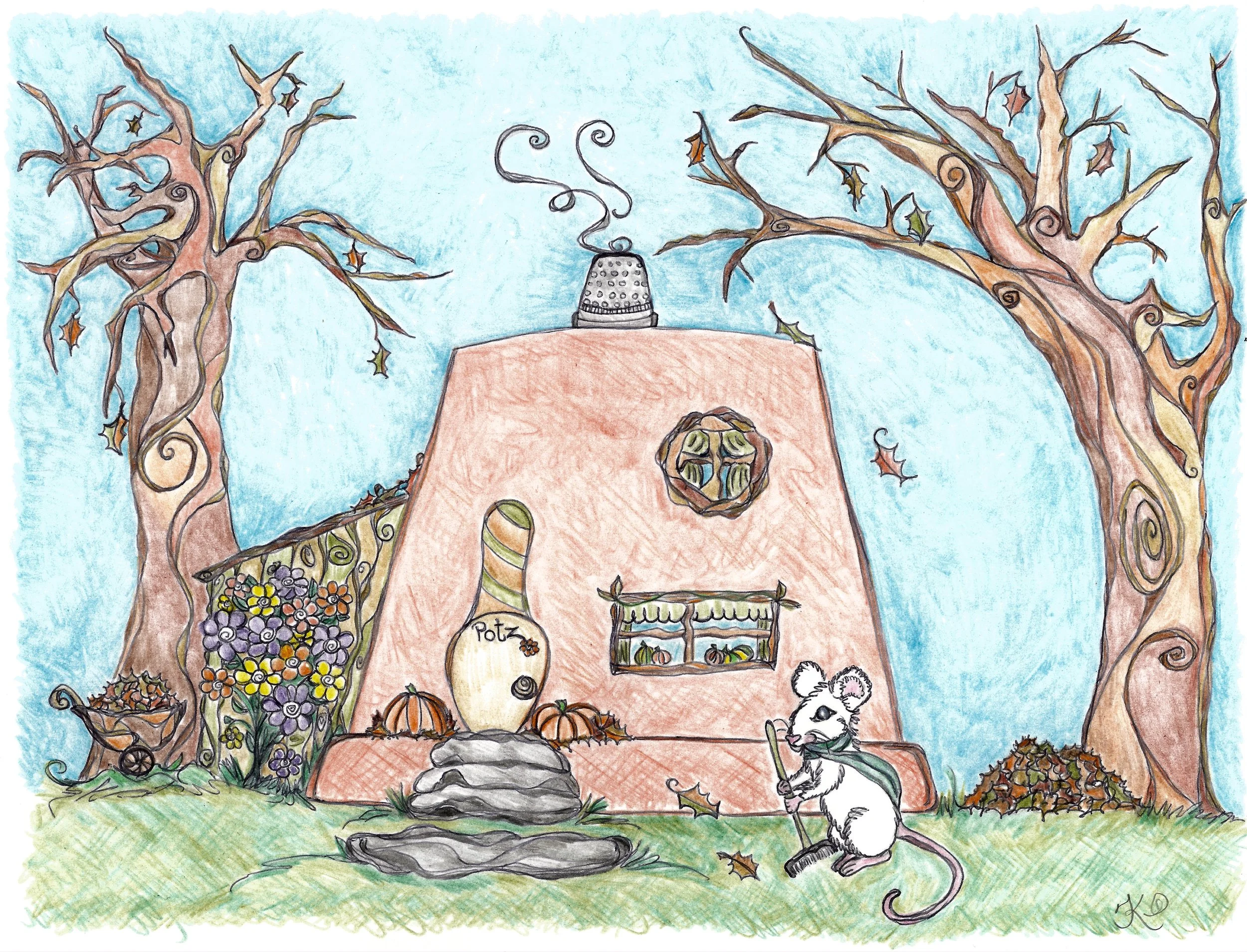Let me introduce you to my friend “Potz.” He is a small white mouse who lives in “Goudaville” and enjoys many hobbies and adventures on his own, and with his friends. I came upon the concept of “Potz” while working on some fun characters for my “Whimsy” collection. At first, I started out with the idea of cards that could be sent to young and old. But, as I was developing the ideas of the cards a whole new world and story was building up around my card creation of “Potz.” Thus, my first book of “Potz” is very close to being done. I still have about a quarter of illustrations left to do and then the process of putting the story to the pages. But soon I should have a completed story of “A Year With Potz.” The story’s concept will be to teach children about seasons, months and some fun holidays too. I’m so excited to share my friend “Potz” with you all, so stay tuned for more on “Potz” in the near future.